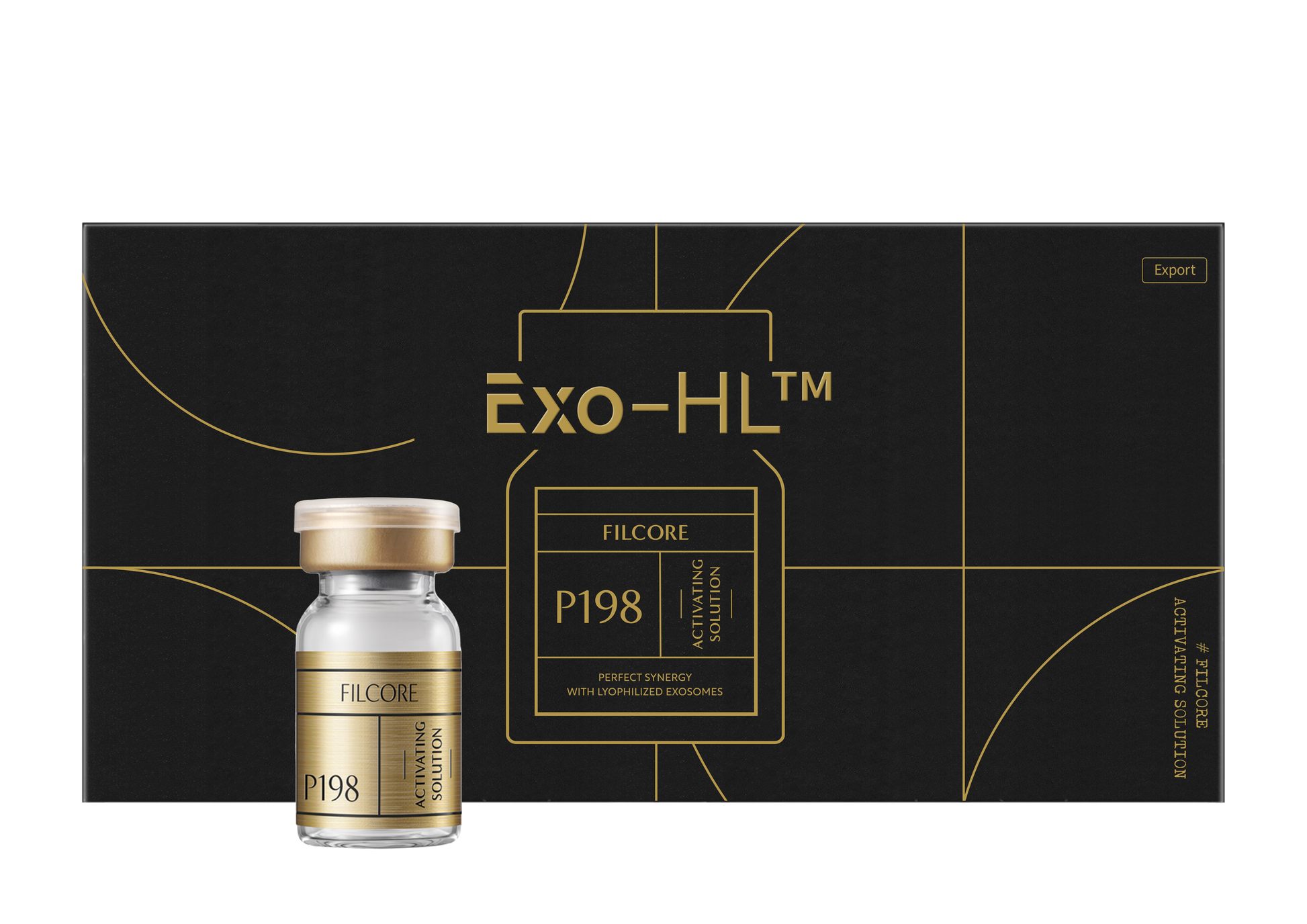 Advanced South Korean Activating Solution for Exosome Technology, with 8 forms of medical grade hyaluronic acid, vitamins, minerals, peptides, and skin health promoting ingredients.